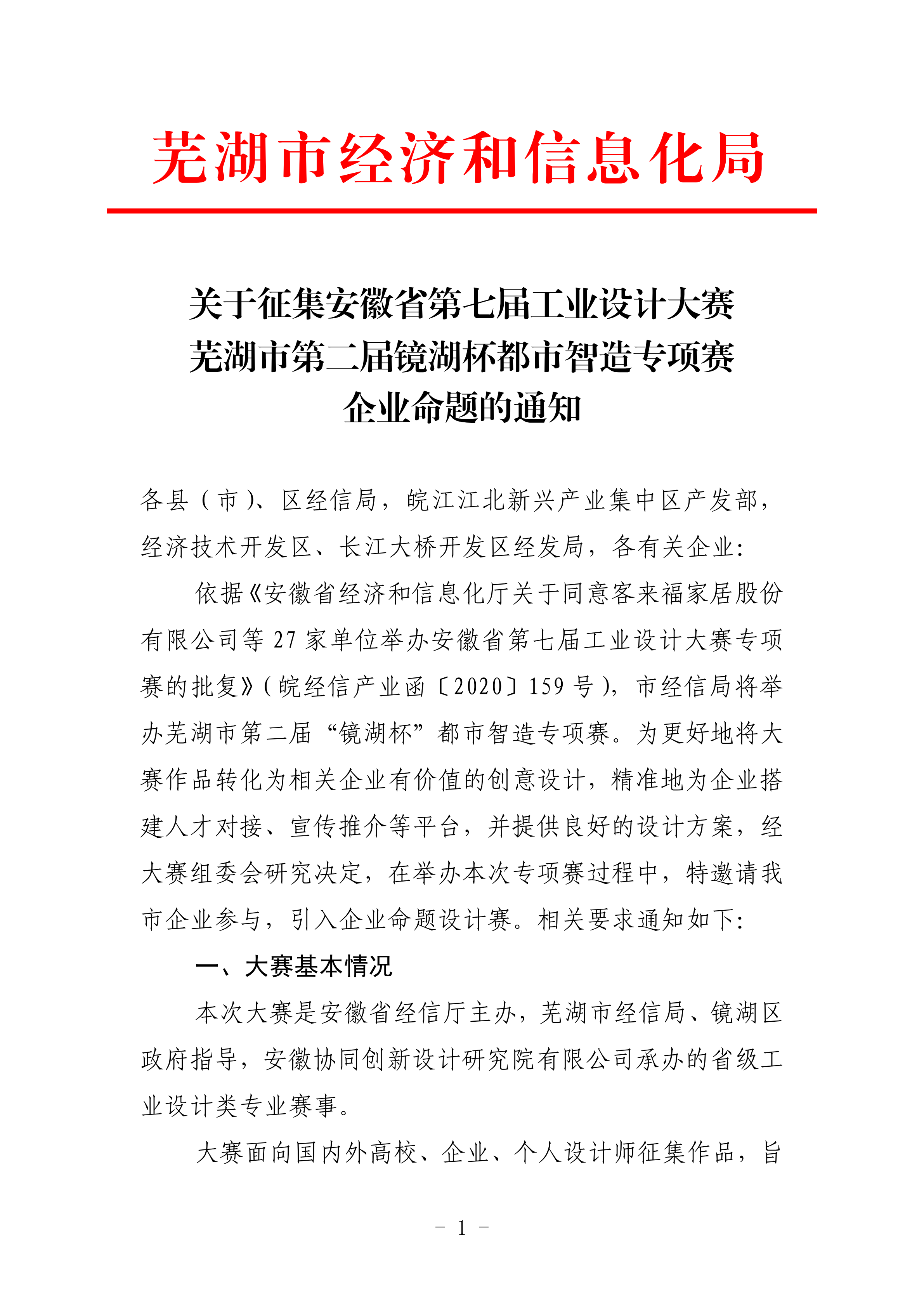 關(guān)于征集安徽省第七屆工業(yè)設計大賽蕪湖市第二屆鏡湖杯都市智造專項賽企業(yè)命題的通知